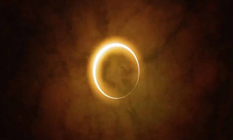 तीसरा है वृत्ताकार सूर्य ग्रहण, जिसमें चंद्रमा सूर्य को पूरी तरह ढकने में छोटा रह जाता है और सूर्य के किनारों पर चमक दिखाई देती है।